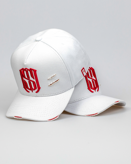 Boné Aba Curva Snapback Mr. Shelby MS-1 Destroyed Branco e Vermelho