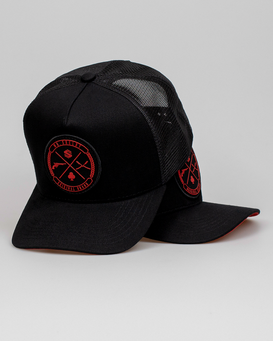 Boné Mr. Shelby Trucker Brasão Preto e Vermelho