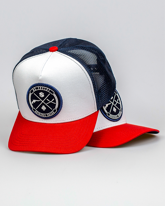 Boné Mr. Shelby Trucker Brasão Azul, Branco e Vermelho