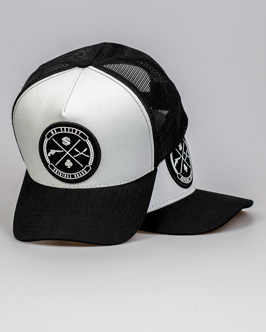 Boné Mr. Shelby Trucker Brasão Branco e Preto