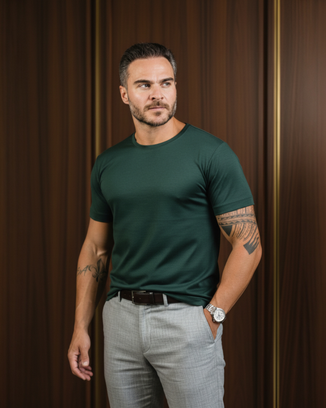 A escolha perfeita para quem busca o melhor em termos de suavidade, durabilidade e estilo. Com o toque delicado do algodão PIMA, esta camiseta proporciona uma experiência de uso incomparável, moldando-se ao corpo com leveza e resistência.