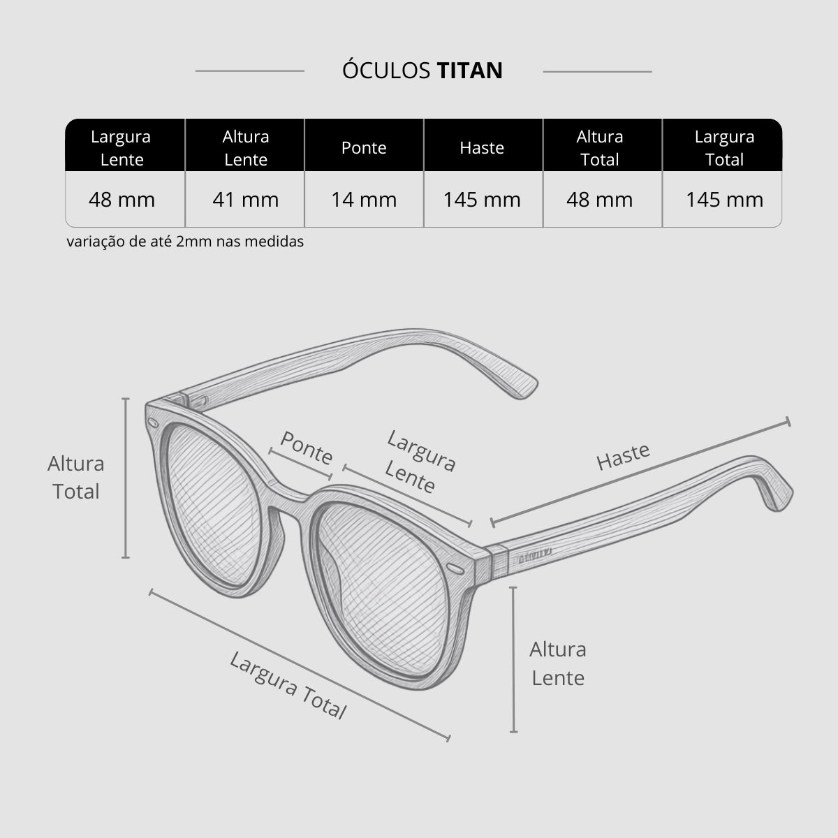 Você pode comparar com um óculos que já utiliza para entender melhor o encaixe ideal.
